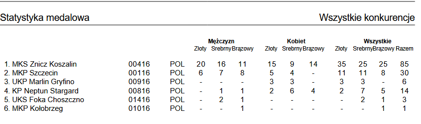 Zdecydowanym zwycięstwem ekipy Znicza Koszalin (85 medali) zakończyły się ostatnie przed feriami zawody pływackie pod nazwą Winter Swim Cup. Szczecińska impreza zgromadziła na starcie reprezentacje 6 klubów z województwa zachodniopomorskiego. Drugie miejsce w klasyfikacji zespołowej zajął zespół MKP Szczecin (30 medali), a trzecie drużyna UKP Marlin Gryfino (6 medali). Najlepsi uczestnicy imprezy uhonorowani zostali nagrodami finansowym.